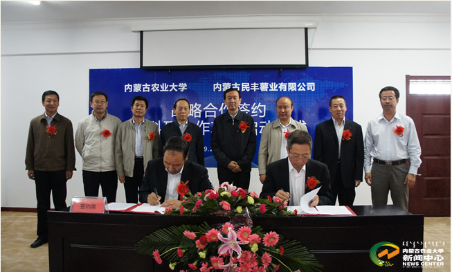 烏蘭察布市委副書記斯琴畢力格、副市長趙錦,內蒙古民豐薯業有限公司董事長盧文兵,內蒙古農業大學黨委書記鄔建剛、副校長芒來出席簽約儀式。芒來副校長與內蒙古民豐薯業有限公司總經理張國在合作協議上簽字。