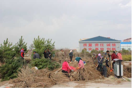 植樹現場,整地、挖坑、栽植、鏟土,處處都是忙碌的身影,呈現出一派火熱繁忙景象。一番緊張的勞動后,一株株樹苗傲然挺立,園區頓顯盎然生機。